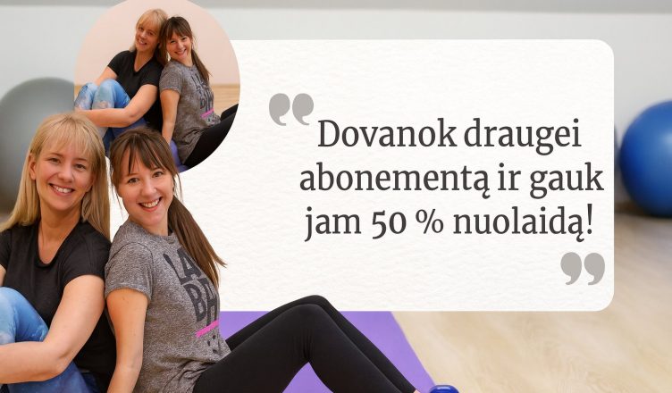 Pirkdama abonementą draugei, tu automatiškai gauni -50 % nuolaidą jo kainai.